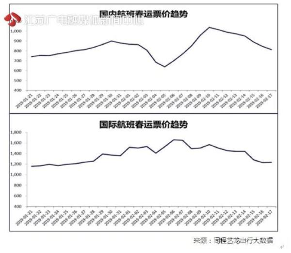 春节黄金周期间明显的“潮汐”客流规律在机票价格上有清晰呈现。数据显示,节前由中西部城市飞往东部沿海城市的航班票价折扣很大,例如,除夕夜成都飞上海的机票经济舱加机场建设费最低仅需250元,比普通列车的硬座票价还要便宜20多块钱。而除夕夜从上海飞往成都的机票即便是“红眼航班”也要900多块钱。节后返程高峰时段则恰好相反,由中西部地区飞往东部沿海的机票价格较高,相反方向的机票价格则折扣很大。相比之下,节后返程客流更加集中,机票价格也相对更高,平均票价在1100元左右,部分热门航线2月10日前后的机票出现了票源紧张的情况。另外,春节期间,一些相对冷门的航线机票价格同样非常亲民,例如,从甘肃银川飞往阿拉善左旗的航班全程仅139公里,飞行时间35分钟,该航段折扣机票最低只要1块钱,算上机场建设费也只要51块钱,比相同路程的汽车票还便宜。