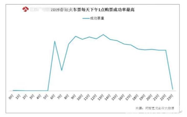 四十余载春运史,铁路一直是绝对主力。据铁路部门预测,2019年春运铁路将发送旅客4.13亿人次。春节期间乘坐火车出行第一道难关就是买票,什么时候下单购票成功率最高?《春节出行报告》提供的成功出票时刻分布显示,每天早上六点、上午九点和下午一点三个时段购票成功率最高。