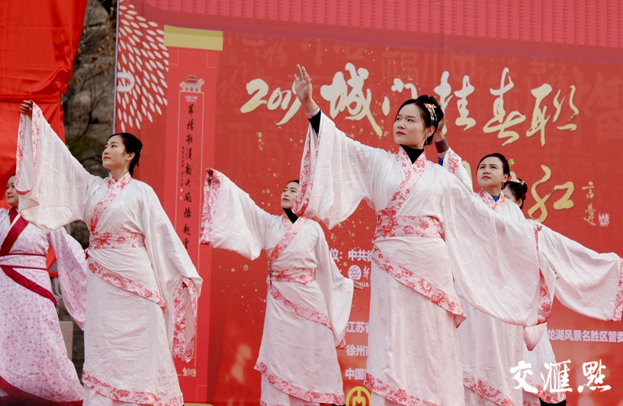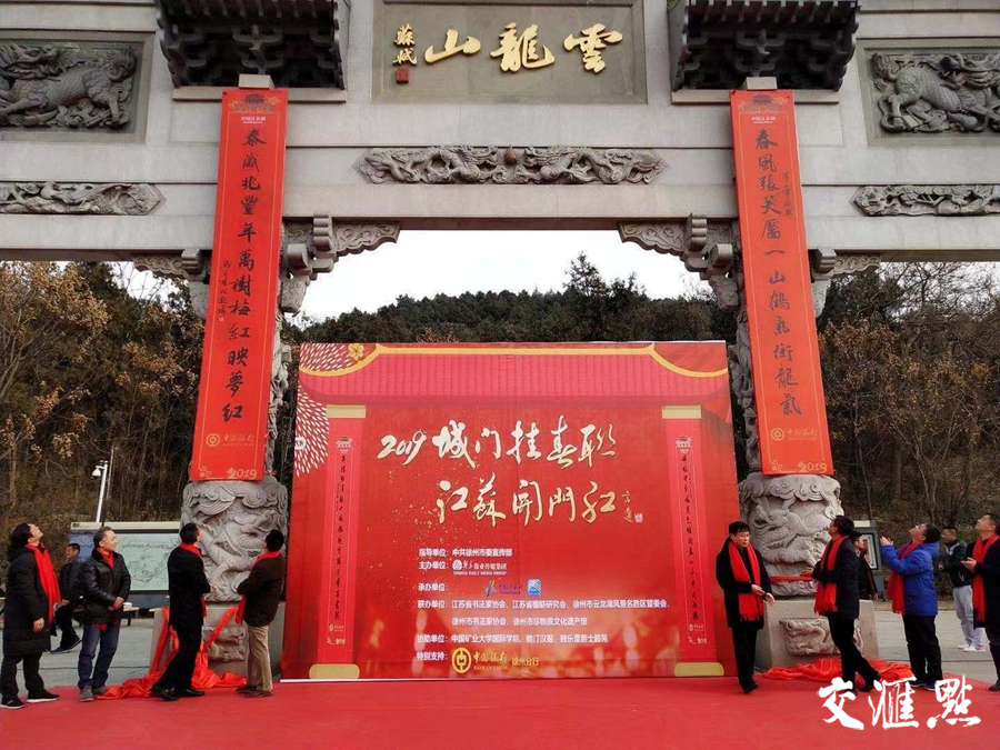 交汇点讯 “春风张笑靥,一山鹤气衔龙气;泰岁兆丰年,万树梅红映梦红。”“旖旎望彭城,秀色铺开,春山十里同招鹤;昂扬歌汉韵,大风振起,云路千重再翥龙。”1月28日下午,盛大的“城门挂春联 江苏开门红”徐州站活动在徐州云龙山隆重举行。祥和喜庆的巨幅春联为节日的彭城增添了一抹亮色。