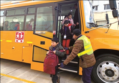 23日一早,启东市近海小学五年级杨铭轩同学早早就等候在马路边,没多久,一辆“大鼻子”校车稳稳地停在她身边。杨铭轩奶奶告诉记者:“以前都是自己骑电瓶车送孩子,现在学校有专门的校车接送,又安全又方便。”(右图)