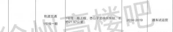 轨道交通1号线一期工程,杏山子站至徐州东站,长约21.97公里,建设年限2014-2019年,于今年通车试运营。