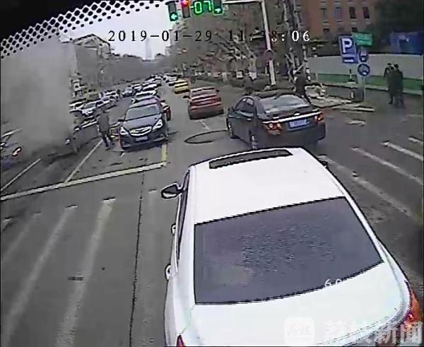 当天中午11点多钟,曹先生驾车在中山北路与察哈尔路路口等信号灯,突然闻到车上有焦糊味,曹先生发现引擎盖往外冒烟,于是赶紧下车在后备箱找来灭火器,可是怎么也打不开,这时车头已经有明火窜出了,且火势越来越大。曹先生考虑到车上的物品非常重要,来不及继续灭火,忙着往外转移物品。