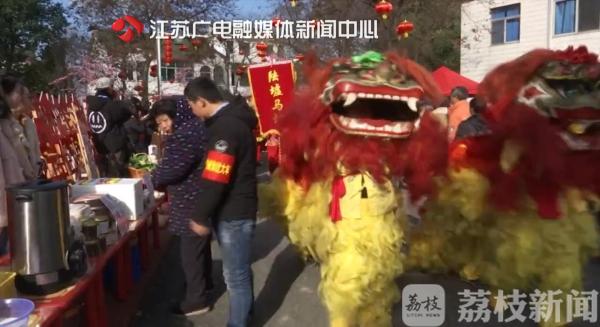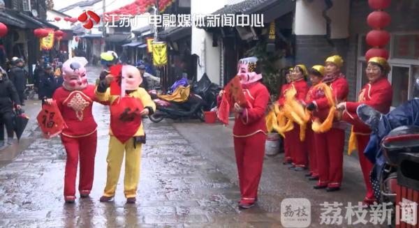 无锡桃源村的舞龙狮、桃花担民俗表演同样热闹非凡,村里还举行了写对联、做年糕、购年货活动,让儿时的年味记忆重回人们的视野。现场还有无锡地方特色的锡剧表演,别具一格的乡村传统年味扑面而来。