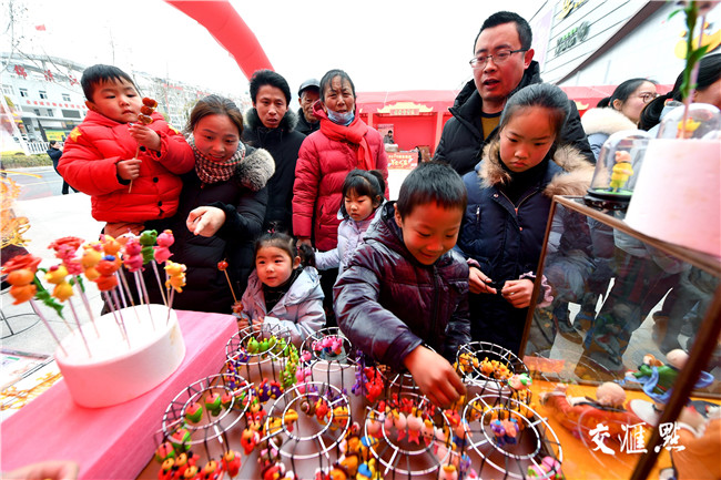 1月29日,一场年货大集在宿迁万达广场开集。老字号区、民俗文化区……草编、棉花糖、面塑、糖画等难得一见的非遗项目悉数登场。