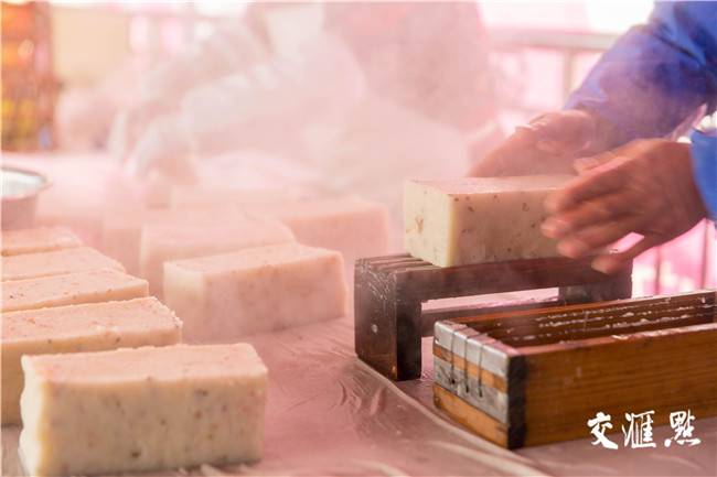 水磨年糕是当地家家必备的年节美食,年年高的好寓意也让吃年糕成为传统习俗。