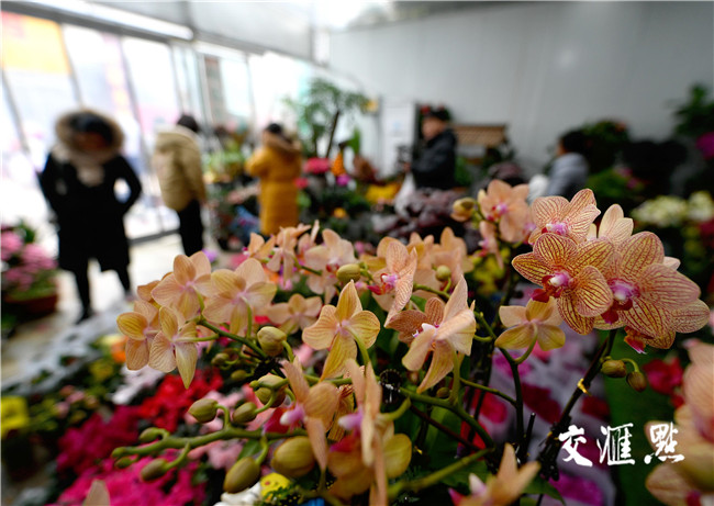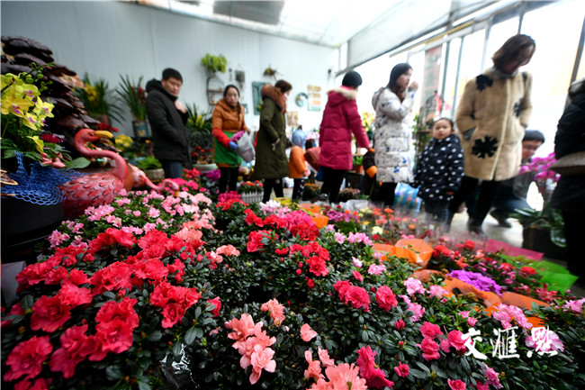 1月19日,宿迁市花鸟市场内顾客正在兴致勃勃地挑选鲜花。