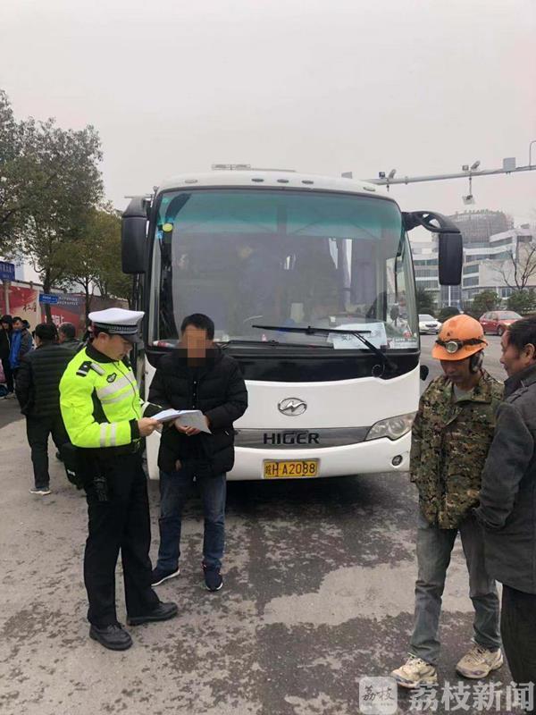 1月29日下午,南京交警四大队执勤五中队中队长范惠旻在巡逻中发现元通地铁站附近有长途大巴车在站外带客。这辆客车在地铁出口处随意停靠,影响正常道路通行。