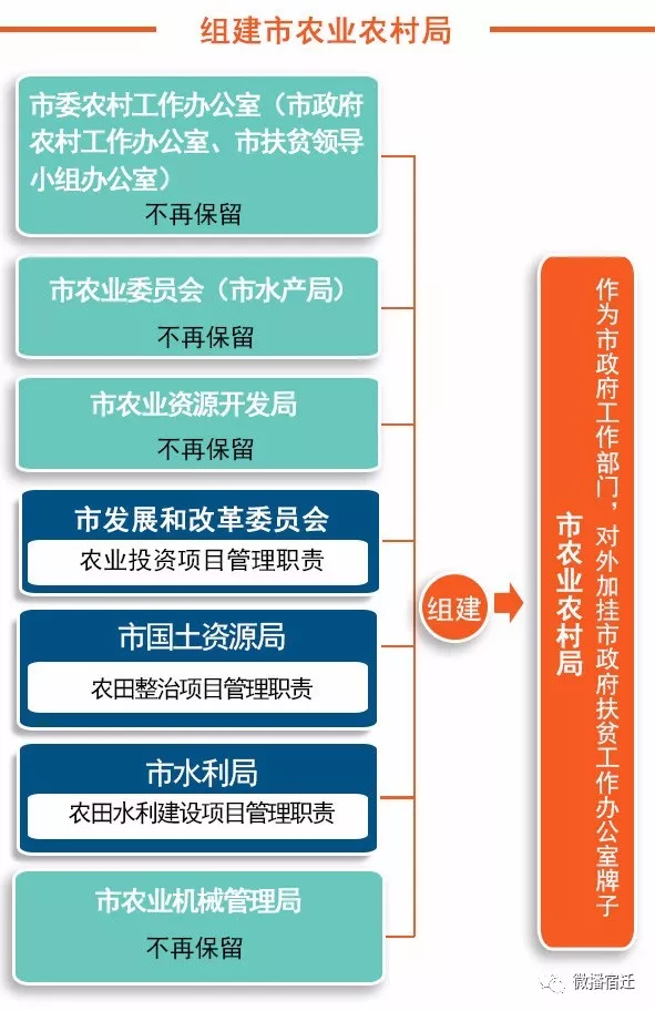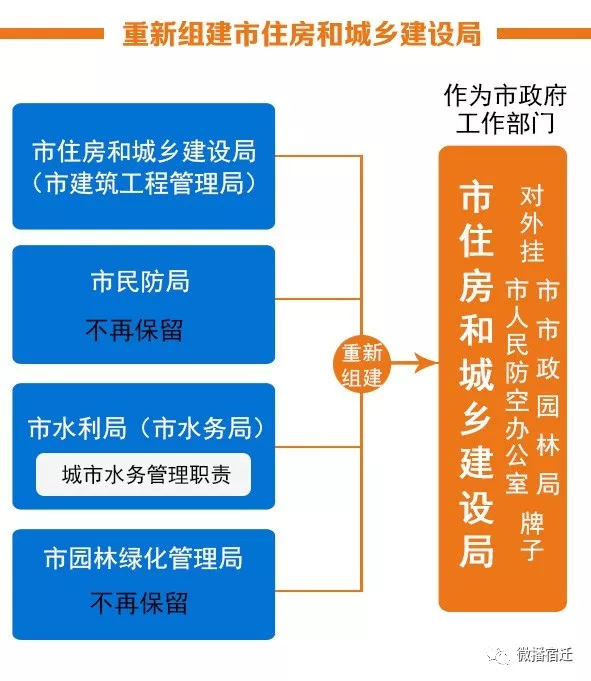 日前,《宿迁市机构改革方案》正式发布,机构改革后,宿迁市共设置党政机构47个。党委机构13个,其中,纪检监察机关1个,工作机关12个。政府工作部门34个。