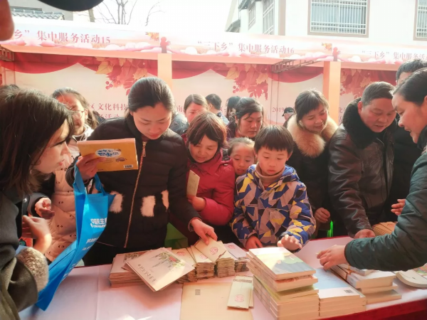 1月20日 南京市全民阅读春风行动 工作人员在江宁谷里徐家院村向孩子们赠送书籍
