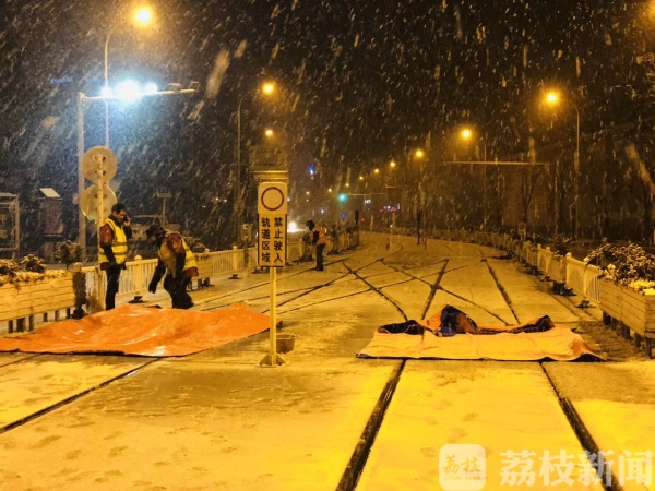 昨天(1月30日),淮安有轨电车的维保工人们迎来了紧张而忙碌的一晚。为了确保雨雪低温天气下有轨电车的正常运行,他们连夜对主要道口、转辙机进行清扫,加涂防冻油,并为关键道岔加盖油布,防止雨雪结冰阻塞轨道。 淮安市现代有轨电车维保部郑亚鹏告诉记者:“我们今天晚上主要是对四个岔路地区进行清扫和涂油防冻处理,以防止明天早上转辙机因为冰冻无法运行。”