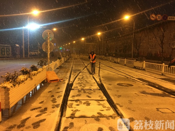凌晨时分,淮安市区的气温已接近零度,而两列电车却正在开展夜间压轨作业,从零点开始到当天早上早班车开车,这两辆都会进行循环的压轨作业,防止轨道里面有结冰积雪的现象。淮安市现代有轨电车正线司机张虎介绍:“我们从凌晨到第二天早上早班发车期间安排了两列车在正线循环进行压轨作业,以保证早上列车顺利地发出。”