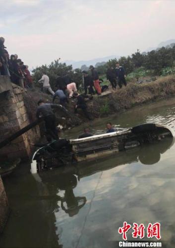 中新网台州1月31日电 (见习记者 范宇斌)31日7点30分许,浙江省临海市桃渚镇武坑闸村一小轿车掉入河内,几个正在河边洗衣的妇女立即向附近村民呼救,8位村民不顾冰冷刺骨的河水,纷纷跳下水救人。