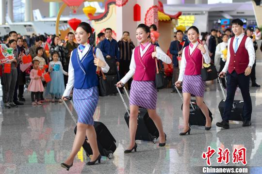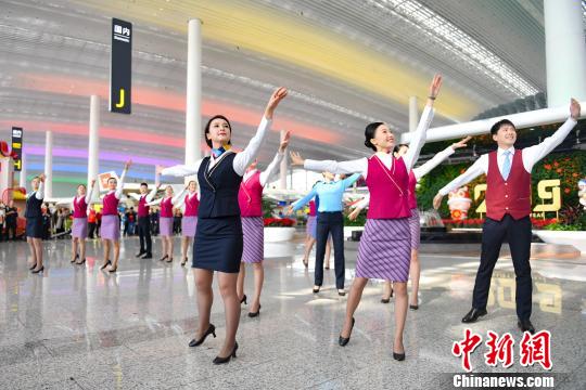 (新春走基层)南航空乘、地服广州白云机场上演春运快闪