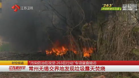 江苏台记者王鹏:现在村里的工作人员已经对过火的地方进行了扑灭,我们现场可以看到,这些燃烧物都是生活垃圾,而且我们可以闻到浓重的烧焦塑料的味道。