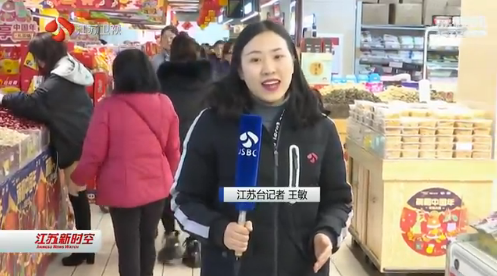 江苏台记者王敏:春节临近,年货市场也红火了起来。在南京的一家大型商超,我们看到前来采买的顾客是络绎不绝。超市里不仅年货供应充足,而且品类也十分丰富。