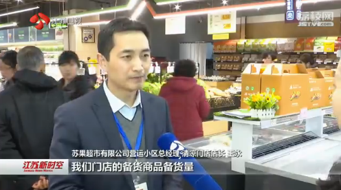 苏果超市有限公司营运小区总经理、清凉门店店长王永说,我们门店的备货商品备货量是平时的三倍,苏果整体而言我们的备货量也是非常充足的。在鲜肉方面备货量达到了5000吨,果蔬达到了5万吨。