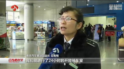 南京汽车客运站站长花有梅说,主要也是考虑到一些夜间旅客、中转旅客,候车大厅的空调、开水、食品供应都是进行保障的,售票厅也是24小时开放的,保证旅客24小时购票,24小时候车。