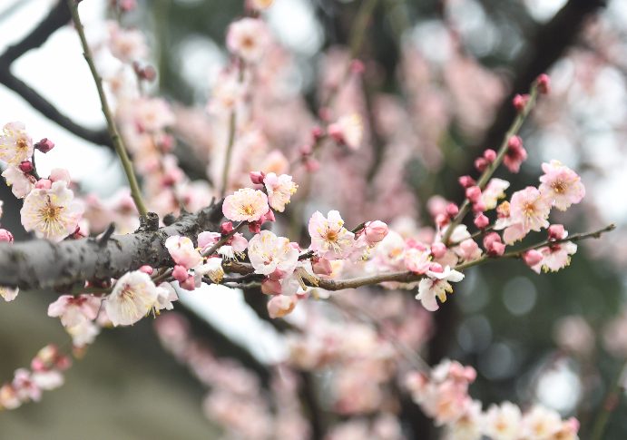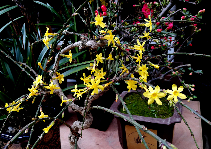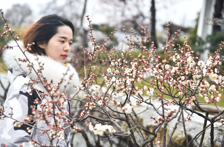 园内的腊梅、茶梅开得正艳,梁洲盆景园内的一株梅花“急先锋”已经迫不及待地盛开,景区内的一株株红梅含苞待放。
