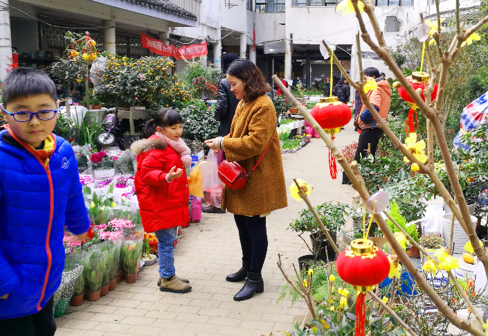 随着新春佳节来临,苏州皮市街花鸟市场年宵花展热闹非凡,满目缤纷的水仙、梅花、海棠、蝴蝶兰等盆景与时令插花应有尽有,吸引众多周末市民选购,装点新春家居。