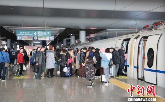 旅客在杭州东站有序排队上车。 沈克勤 摄
