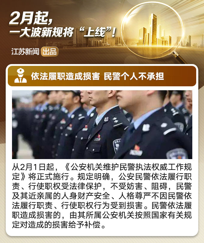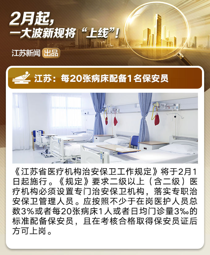 2月起,一大波新规将正式“上线”: 首部维护民警执法权威的规章施行;金融信息服务提供者不得散布虚假信息;长江刀鱼被禁止生产性捕捞;每20张病床需配备1名保安员……戳图↓了解更多详情,转发周知!