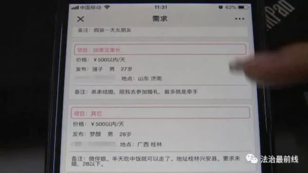 对此律师表示,租友回家的行为其实是一种雇佣关系。如果只是找人陪你逛街、购物、或者是和老人聊天,都不违法。但是如果假冒男女朋友关系,那么双方即便签了合同,也没有法律效力。