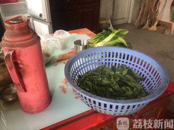 1月31日上午十点多,在港闸区陈桥街道育爱村的邵学仁夫妇家中,两位老人正在准备午饭,夫妇二人一人摘青菜,一人淘米,这便是两位老人午饭的全部,邵学仁老人的妻子沈秀英面露微笑地说:“习惯了,这些年都吃这些,这米还是好心人给的。”