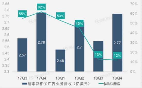 搜狐第四季度搜索及搜索相关广告业务营收为2.77亿美元,较2017年同期增长12%,较上一季度增长8%。