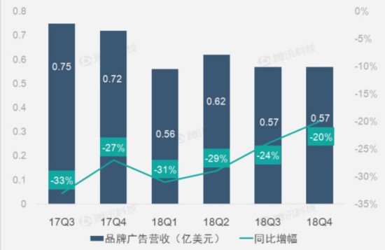 搜狐第四季度品牌广告营收为5700万美元,同比下滑20%,环比持平。品牌广告营收的同比下滑,主要受视频和房地产广告营收下滑的影响。