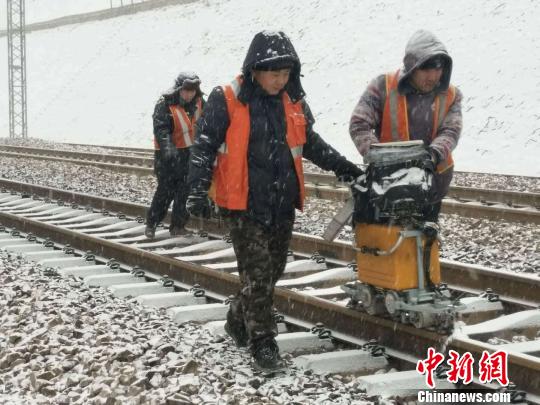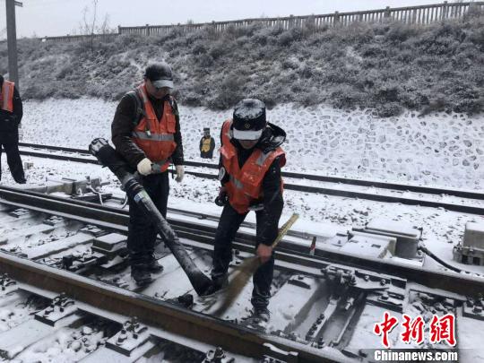 铁路职工为风雪中的春运保驾护航。 任丽娜 摄