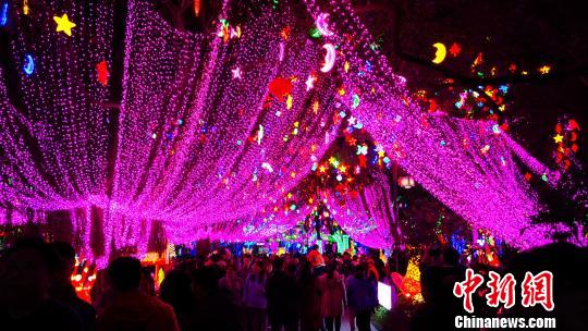 2019年广东惠州西湖灯会光彩夺目、璀璨耀人,吸引众多游客前来观赏。 苏生 摄