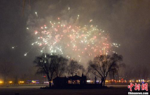 资料图:北京后海周边,大量燃放的烟花爆竹使空气能见度大大降低。中新社发 刘震 摄
