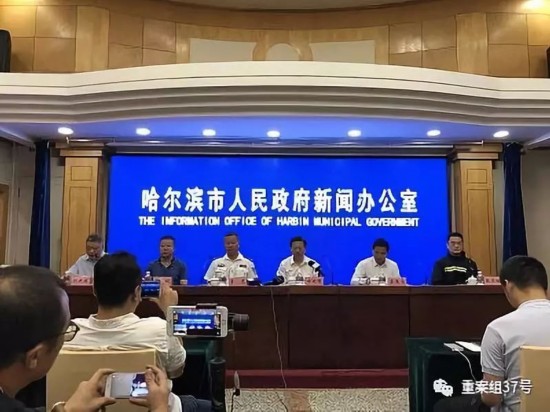 ▲去年8月25日下午,哈尔滨市政府召开新闻发布会,通报火灾事故情况。图/视觉中国