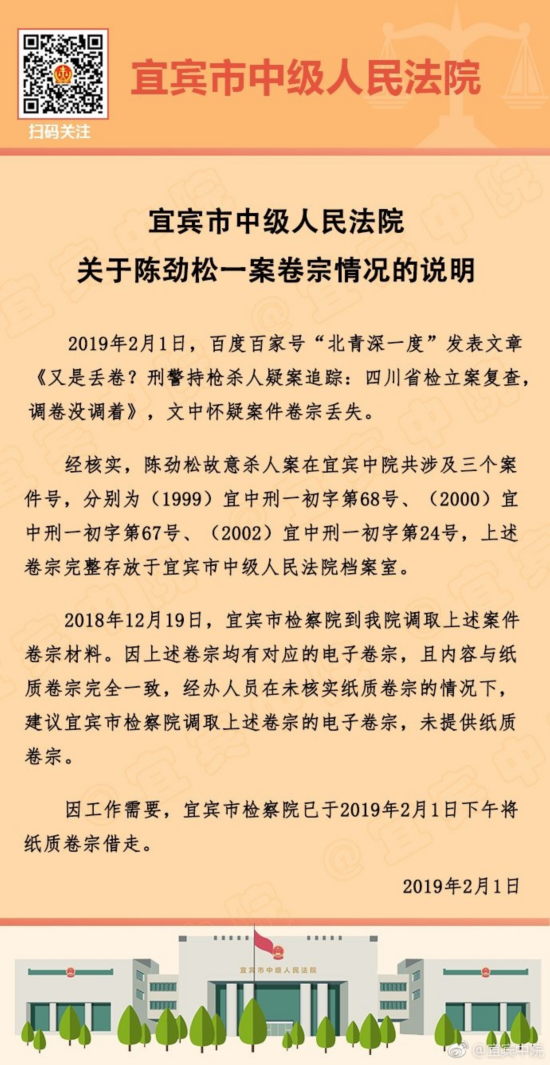 (原标题:宜宾市中级人民法院关于陈劲松一案卷宗情况的说明 ????)