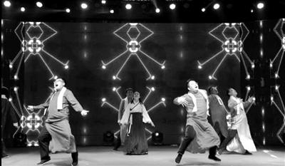 北京青年报记者从现场视频中看到,舞台上几名身着各色传统中式服装的舞蹈演员,跟随网红歌曲《海草舞》《隔壁泰山》等作出各种与歌曲搭配的经典舞蹈动作。领舞的两位身着红色长褂的中年男子,舞蹈动作到位,面部表情丰富,被网友们频频点赞,隔空喊话要求“c位出道”。