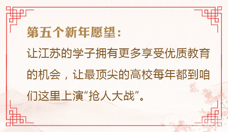 娄勤俭:去年我在连云港慰问从上海退休返乡的全国道德模范方敬,他说,最大的愿望就是让村里多出一些大学生。中考前夕如雪片般飞来的教育舆情,让我多年来第一次为工作上的事睡不着觉。在深入调研的基础上,省委常委会研究,启动实施教育改革,数万名江苏学子已经有更多的机会上高中、上大学、上好大学。我们深知,教育改革是一个系统工程,现在还有很多不尽如人意的地方,一定要站稳人民立场,持续推进、久久为功,让江苏的学子拥有更多享受优质教育的机会,让最顶尖的高校每年都到咱们这里上演“抢人大战”。