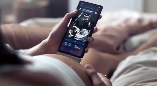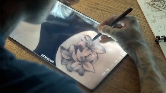 在视频30秒标志处展示了另一款概念智能手机,这款手机具有超窄边框,并配备了可连接到医疗超声设备的USB端口。此外,三星在视频中还展示了另一款有趣的移动设备,即一位纹身师正在使用的无边框平板电脑。