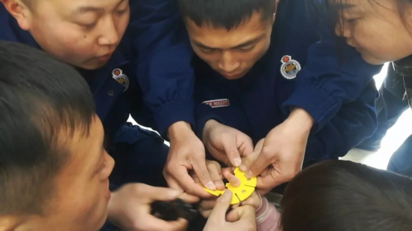 送到消防大队之后,消防大队指导员立即安排几名队员在门卫救助室对小女孩施救,消防队员用工具对玩具进行剪切,整个过程持续了大约五分钟左右,小女孩的手成功从被卡物品中解脱出来。