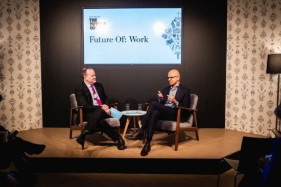 在上周的达沃斯世界经济论坛(World Economic Forum)上,纳德拉与《华尔街日报》总编马特默里(Matt Murray)讨论了自己担任微软首席执行官以来的经历以及科技行业面临的一些挑战。以下是一些摘要: