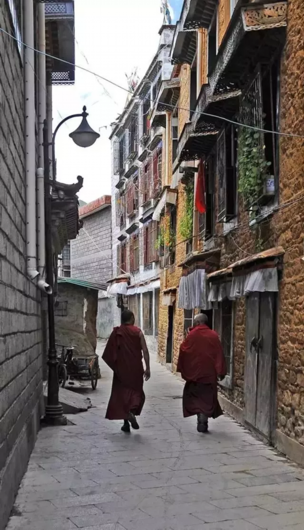 说它是条马路,真的很点言过其实,说它是小巷吧,它又比小巷来得大气和舒展。它是沿布达拉宫而修建的一条环行路。“泽廓”路在拉萨算得上是很美丽的一条路了,这里的精华所有就是把龙王潭公园和布达拉宫紧紧地连接在一起。