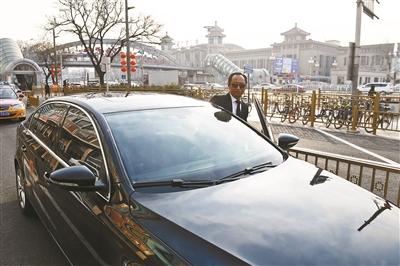 滴滴礼橙专车司机郑军在北京站附近等候乘客
