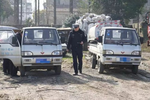 近日,连云港赣榆公安分局民警在义塘路巡逻时,查获4辆装了油桶、加油泵等加油设备的非法改装加油车。目前,违法车辆已被依法暂扣。