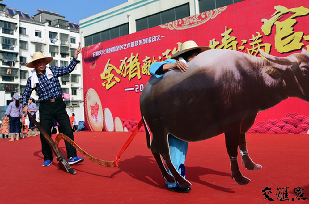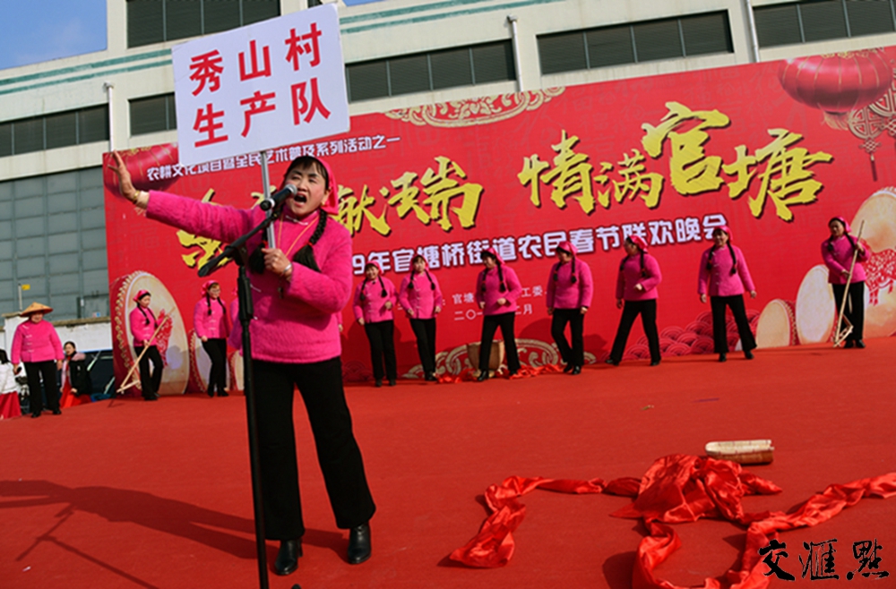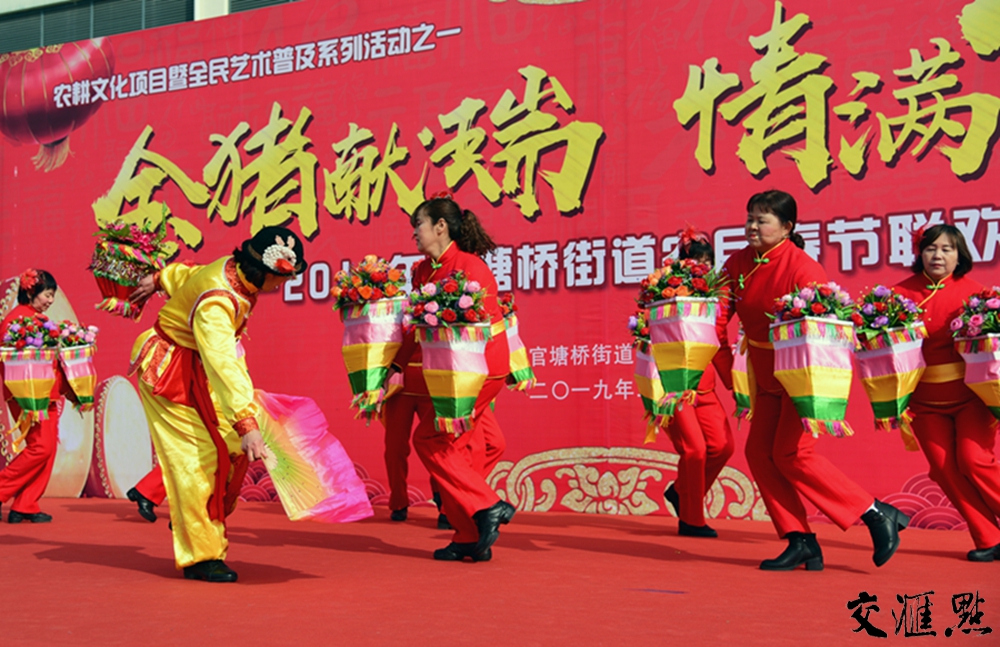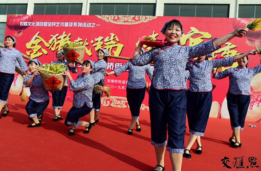2019年2月1日,镇江市,官塘桥街道“金猪献瑞 情满官塘”农民春晚激情开演,来自辖区各村(社区)的农民草根演员自编、自导、自演精彩的文艺节目,为即将到来的猪年春节增添浓浓年味。这是该街道连续第11年举办农民春晚。