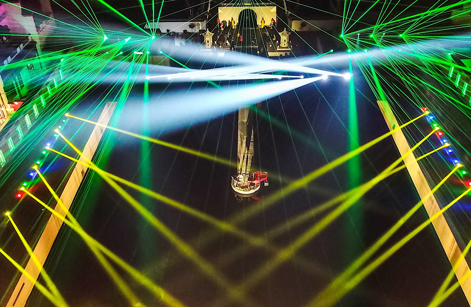 2019年2月2日晚,南京中国科举博物馆“千年一梦”音乐光影盛典拉开帷幕。本次音乐光影盛典融合优秀原创音乐和国际最新声控光影技术,在灯光投影、音响、古建筑、水景的映衬配合下,营造出气势磅礴、如梦如幻般的光影音乐空间。 新华报业视觉中心记者 邵丹/摄视觉江苏网供图。