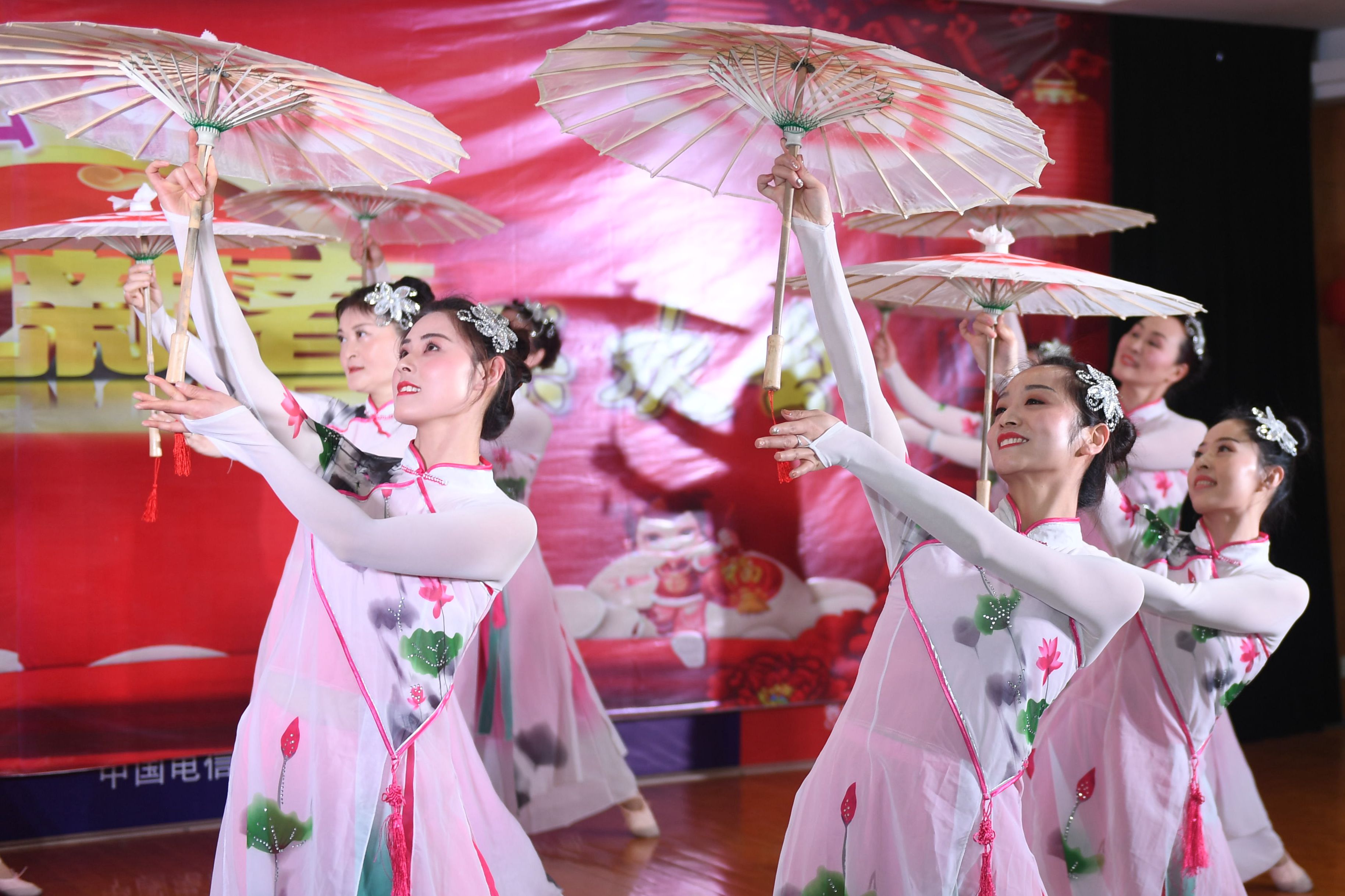 2019年1月31日, 淮安, 中国电信淮安分公司员工和退休员工欢聚一堂, 载歌载舞迎新春。桂宝林 摄 视觉江苏网供图