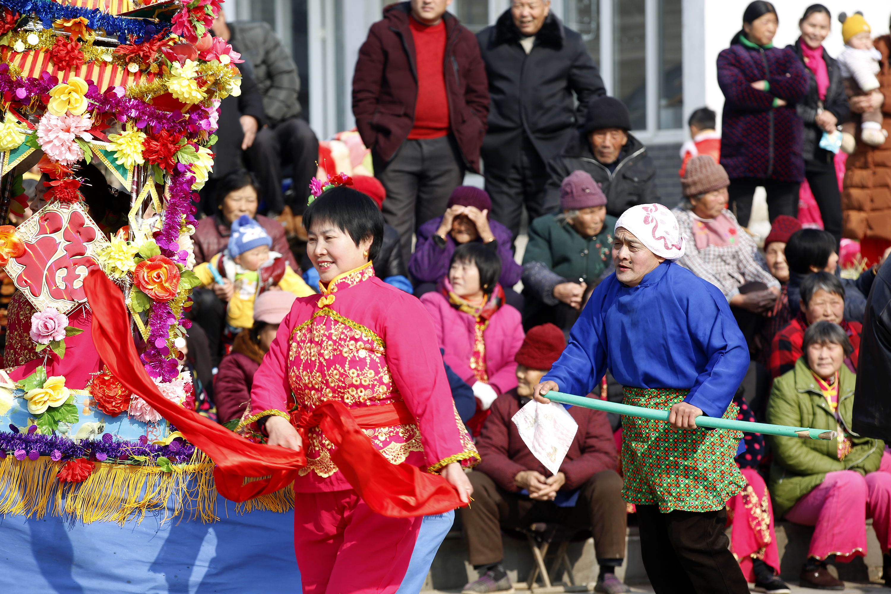 2019年1月28日,连云港市赣榆区海头镇文化站为农村群众送上自编自演的文艺节目。新春佳节即将来临,该区文化部门通过这种方式让农村群众在家门口就能欣赏到文艺节目,营造喜庆气氛。朱代桂 王涛 摄 视觉江苏网供图