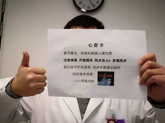 “注意保暖、开窗通风、热水泡脚、多喝热水。我们会守护在医院,但并不希望见到你”