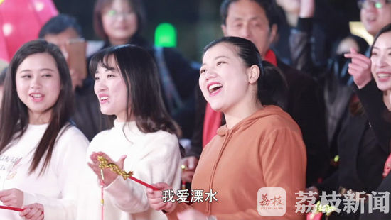 护城河上的灯光秀炫酷亮出了“大美秦淮源,健康新溧水”的字样,现场市民们打开了手机闪光灯,一边随音乐挥舞一边祝福:“我爱溧水!”。这么近,这么美,就在溧水!