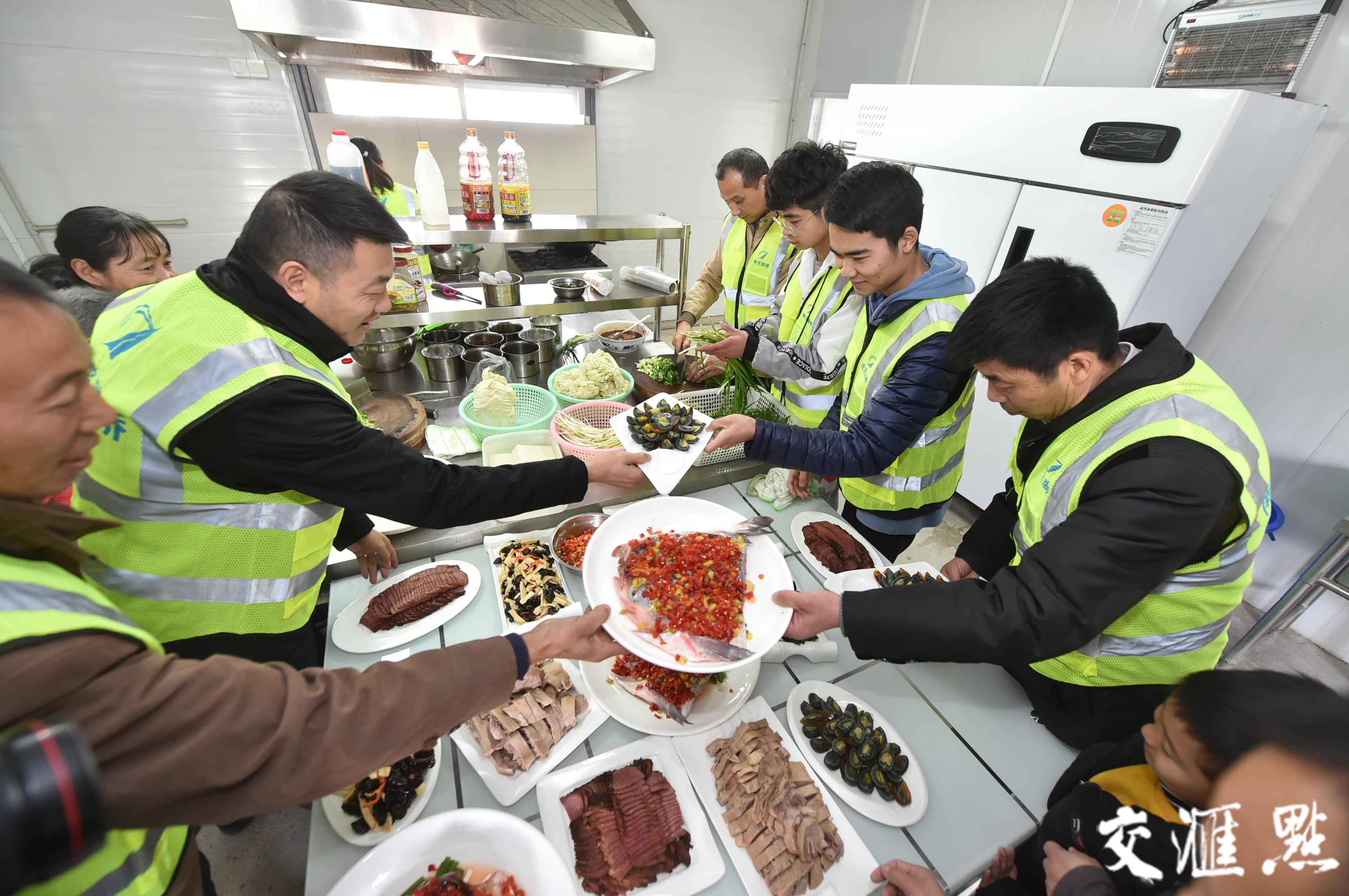 项目部把留守人员的家属都接了过来,一起在工地上过年。留守在工地的王庆玲说,“这里的年夜饭很丰富,鸡鱼肉蛋,十几道大菜,该有的一样不少!”