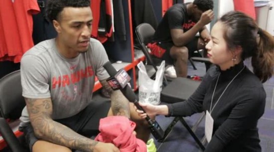 中国时间已经进入新春初一,而美国这边仍然在农历旧年中。华盛顿第一资本球馆,刚刚结束了奇才老鹰的对决,老鹰以137-129胜出,赛后,在更衣室再次遇到科林斯,我问他想不想学一句中文,今天刚好是中国新年。他脸上贴在着OK绷,耐心地向记者一遍遍学“新年快乐”的中文发音。对于刚开始职业生涯两年,还没有去过中国的他来说,这四个字念起来,并不容易。原本念得已经接近发音了,他还是央求再来一遍,再来一遍。